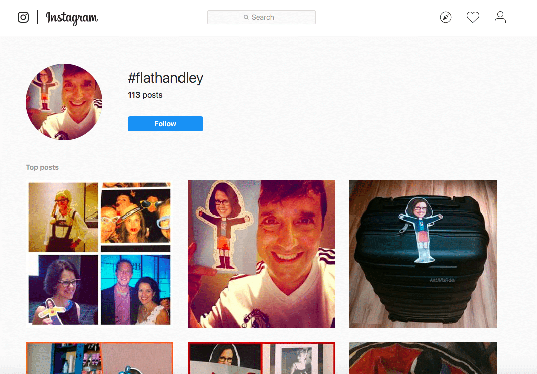 The image below shows Instagram posts tagged with #flathandley – a cardboard cutout of my good friend Marketing Profs’ chief content officer, Ann Handley, that was sent out to attendees of their annual B2B Forum event. (I’ll be there this year. If you’re going, come say hi!)